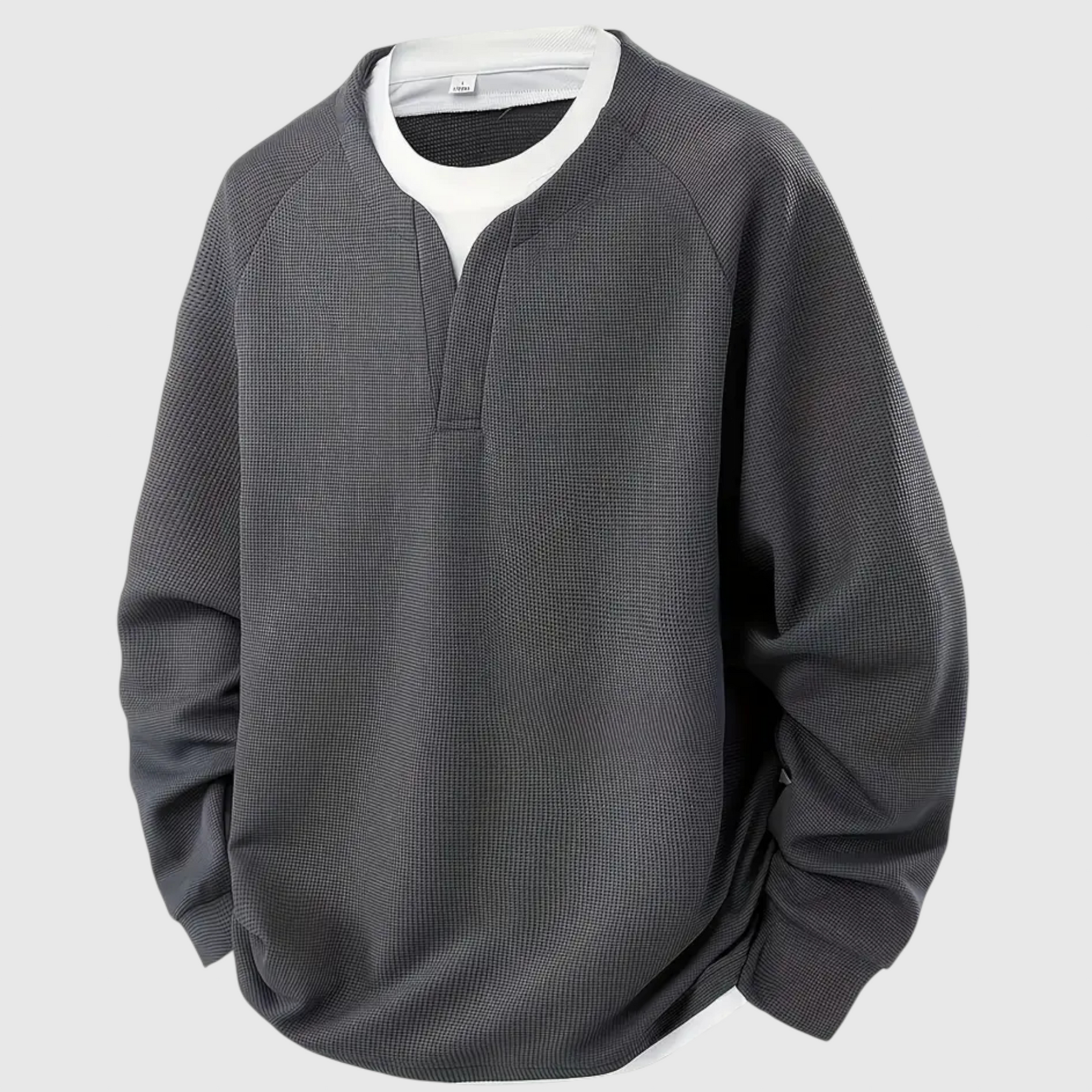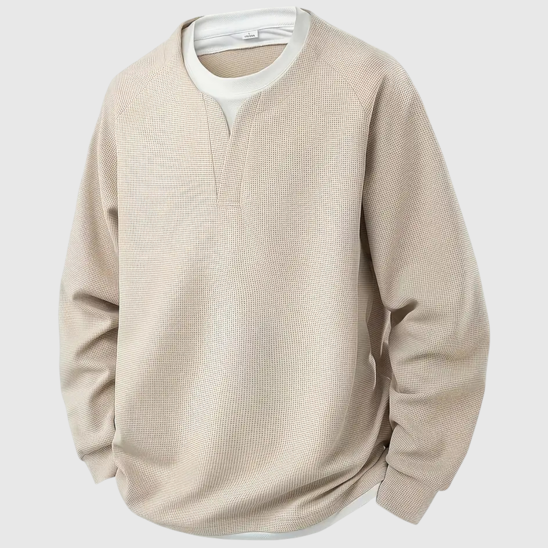 Alex vrstvený dlouhý rukáv vám poskytne upravený vzhled dvou kusů s pohodlím pouze jednoho. S chytrým designem 2-v-1, který zahrnuje lehký svetr s vaflovým pletením a vestavěnou bílou spodní vrstvu, je to moderní nezbytnost, která kombinuje jednoduchost, texturu a všestrannost. Ideální na neformální kávové výlety, pracovní dny nebo uvolněné večery doma.