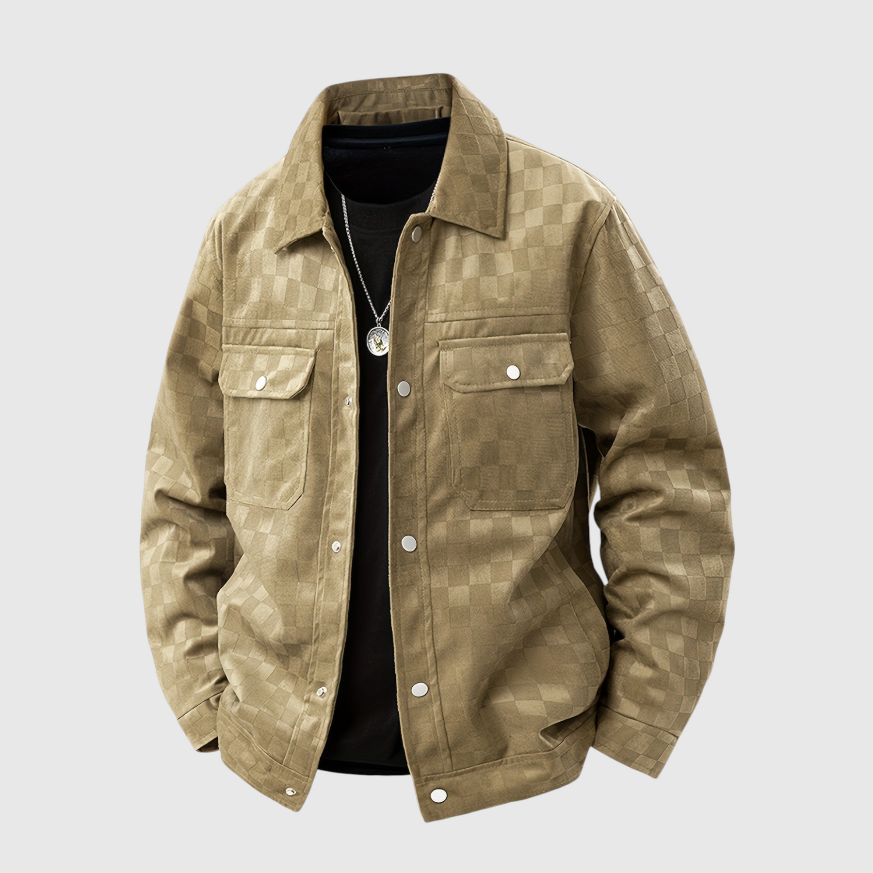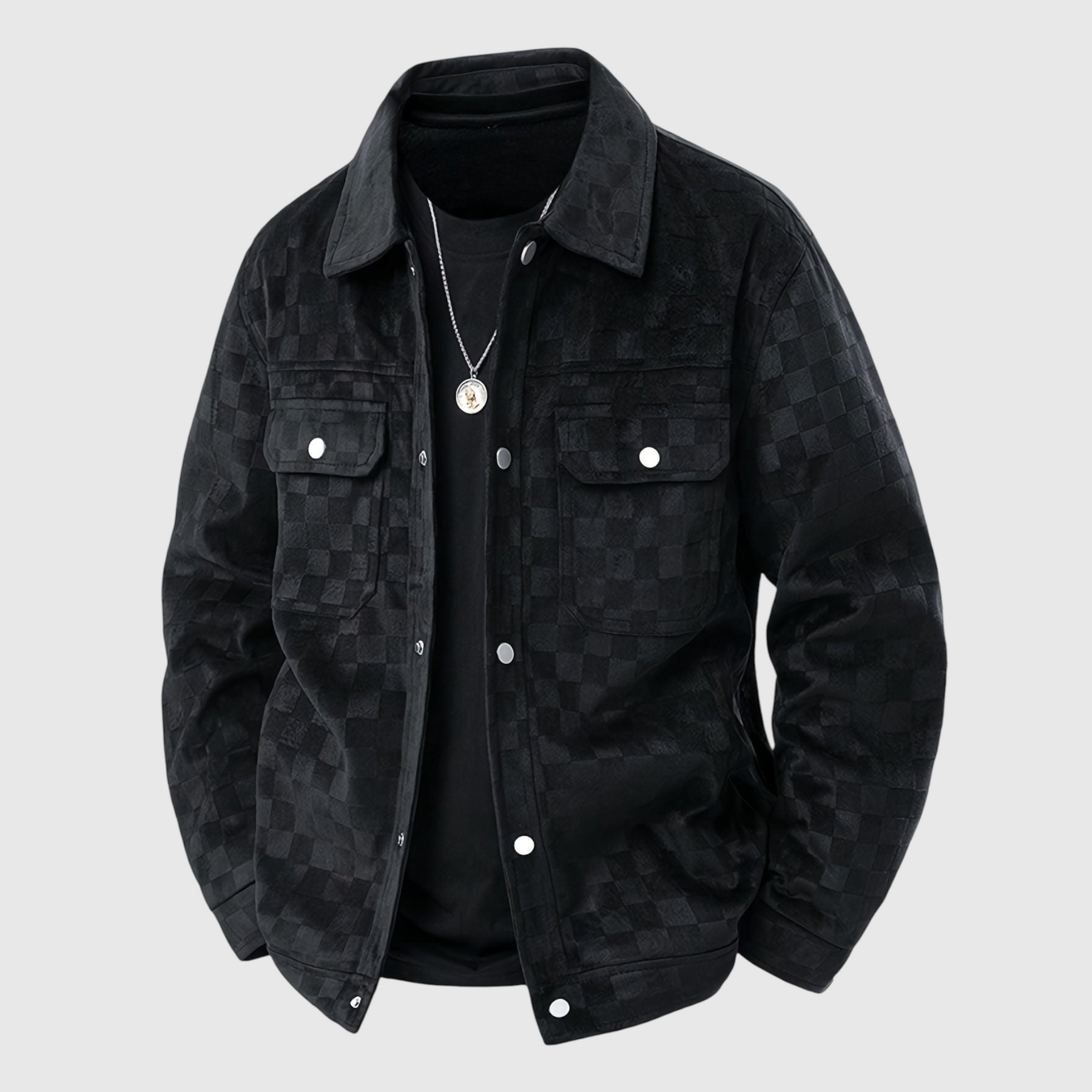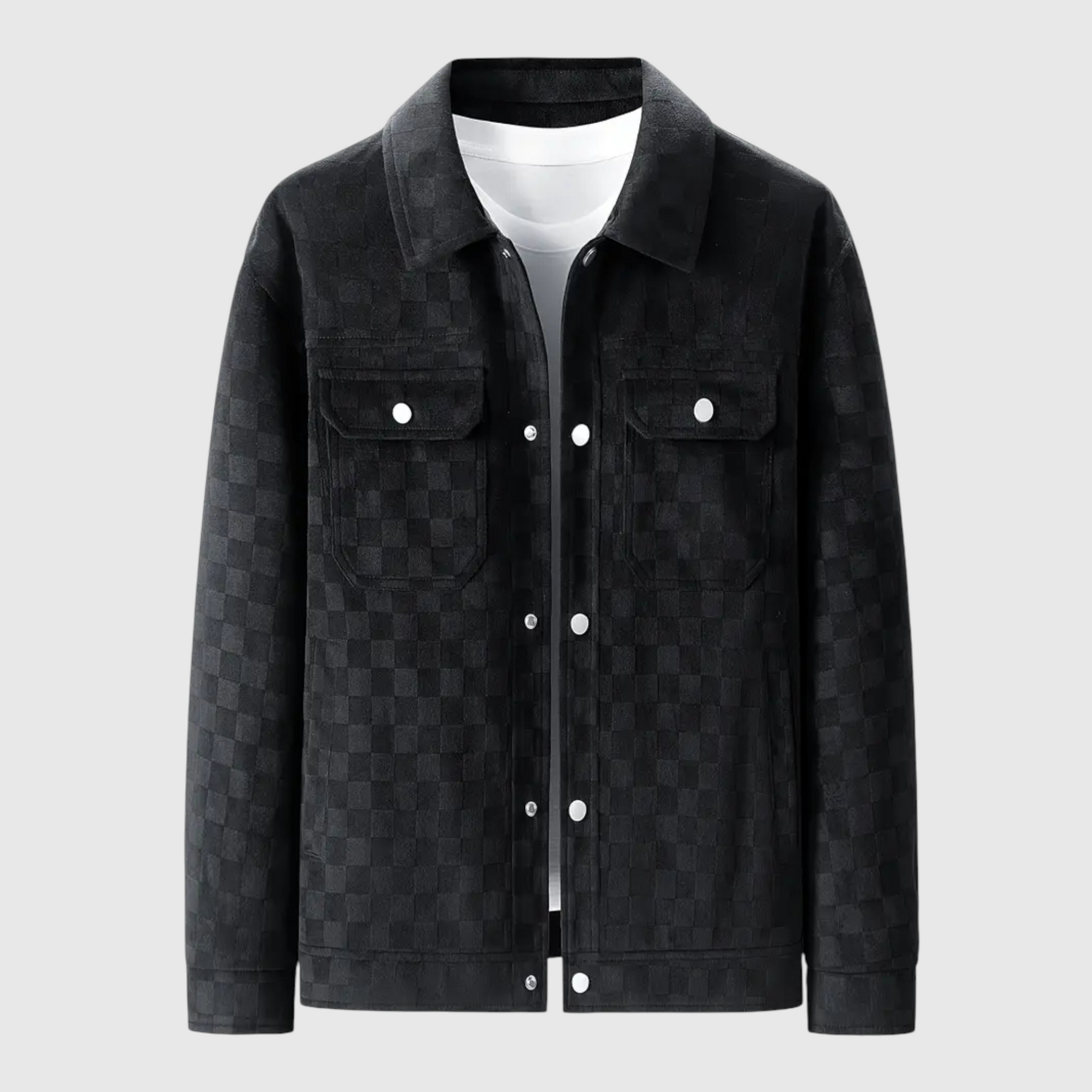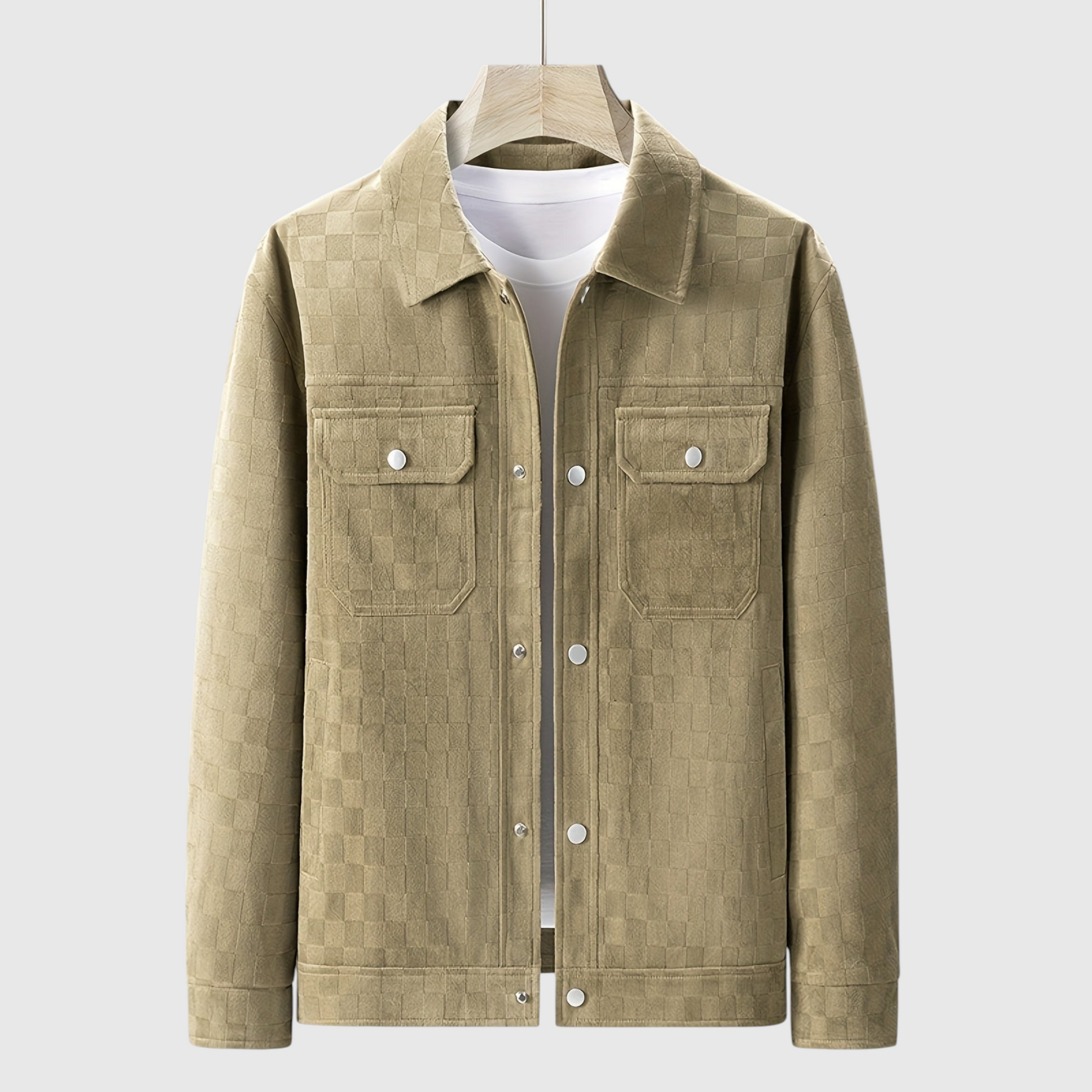 Představujeme CALDERO, kde se klasická elegance setkává s moderní sofistikovaností v oblasti svrchních oděvů. Tato bunda je vyrobena z nejjemnějšího velurového semiše a pyšní se jemným tónovým károvaným vzorem, který vyzařuje luxus a nenápadný styl. Její strukturovaná silueta zajišťuje uhlazený a definovaný střih, který dokonale spojuje klasický styl s moderními designovými prvky.