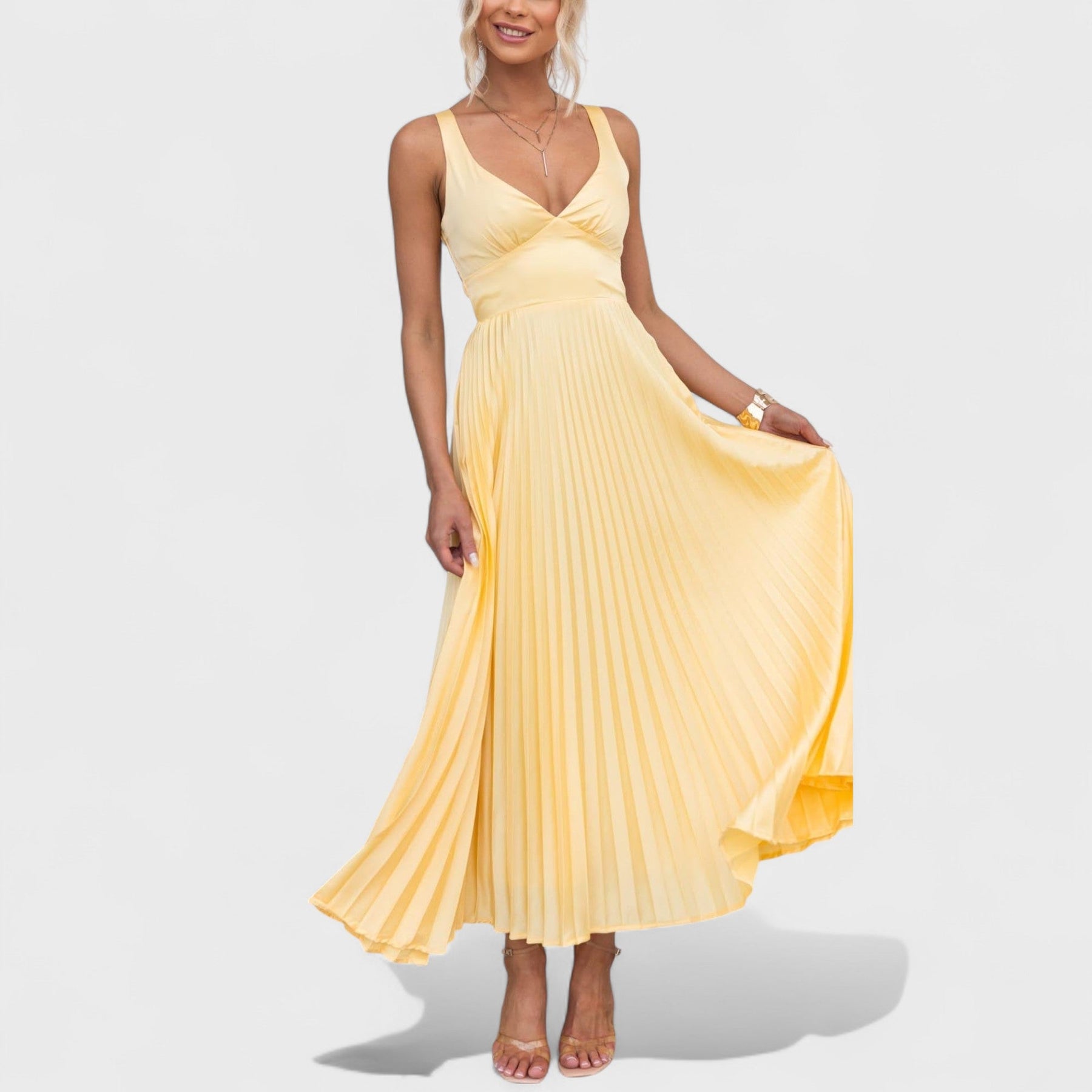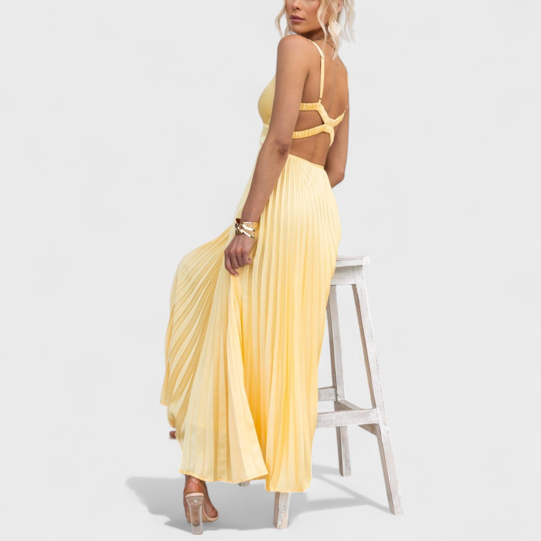 Šaty Marie vynikají jemným plisováním, které dodává šatům lehkost a elegantní pohyb. Výstřih do V zvýrazňuje dekolt a přidává šatům sofistikovaný nádech. Díky maxi délce působí velmi vznešeně a jsou ideální volbou pro slavnostní příležitosti i letní večery ve městě.