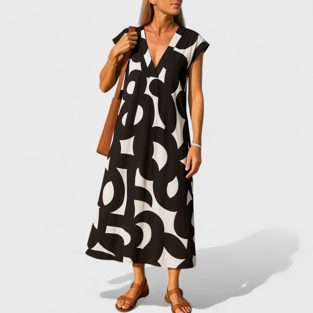 Šaty Zita jsou stvořené pro chvíle, kdy chcete vypadat upraveně, ale cítit se přirozeně. Jemný splývavý materiál ladně objímá tělo, zatímco výstřih do V zdůrazňuje krk a dekolt s promyšlenou elegancí. Délka po kotníky dodává outfitu vznešenost a promyšlený vzhled pro každý den i večer.
