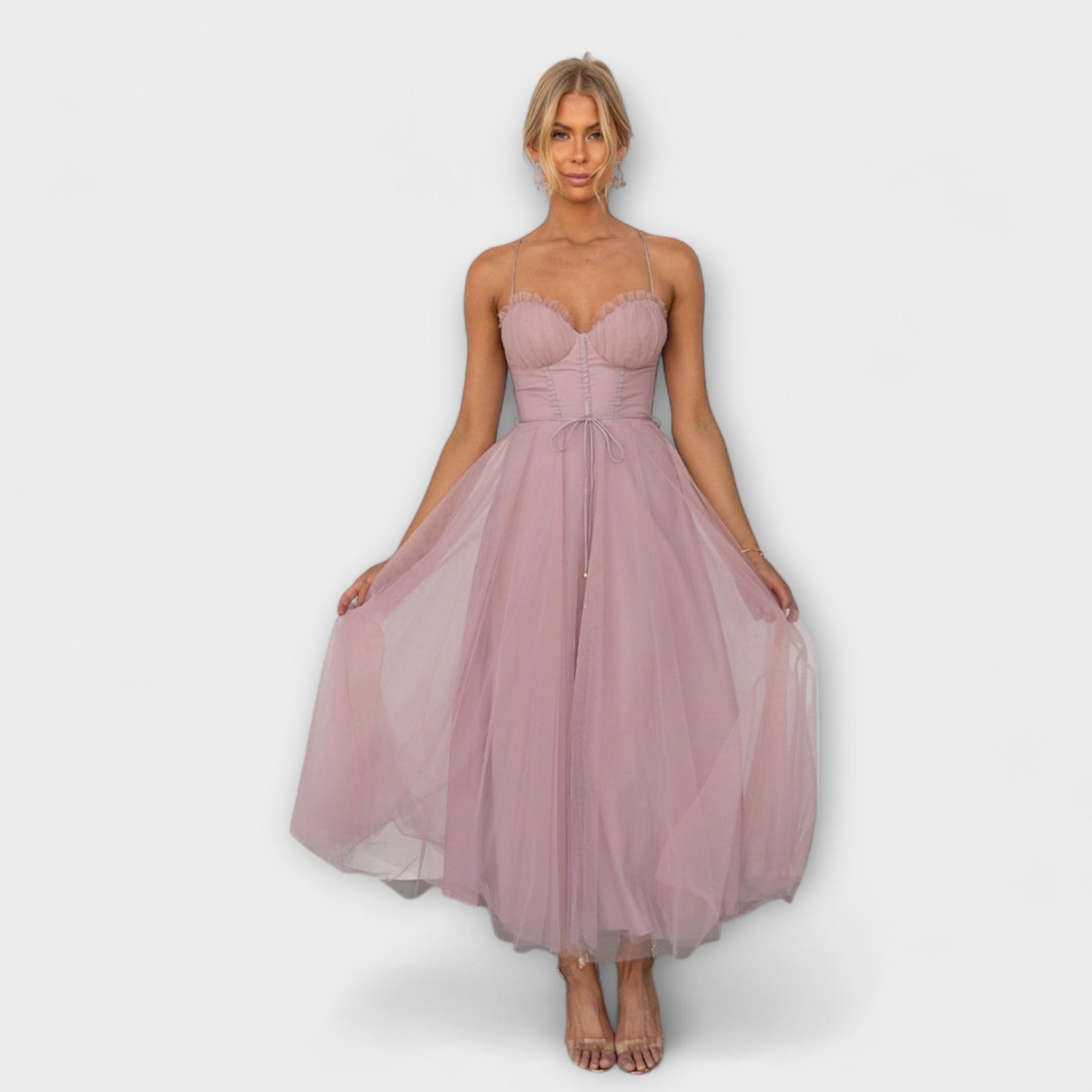 Elegantní silueta s stylovým vyzařováním: Tyto slavnostní midi šaty vyzařují eleganci a zdůrazňují postavu s lichotivým střihem. Plynulý střih zajišťuje snadnou volnost pohybu – ideální pro svátky, elegantní akce nebo stylové večery.