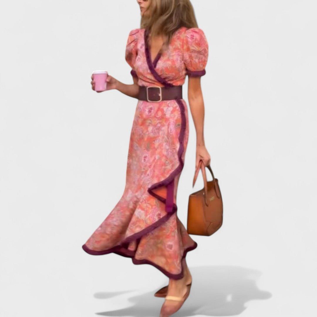 • Něžný růžový odstín a splývavá maxi délka – Dodává šatům romantický a nadčasový vzhled, který je ideální pro letní události