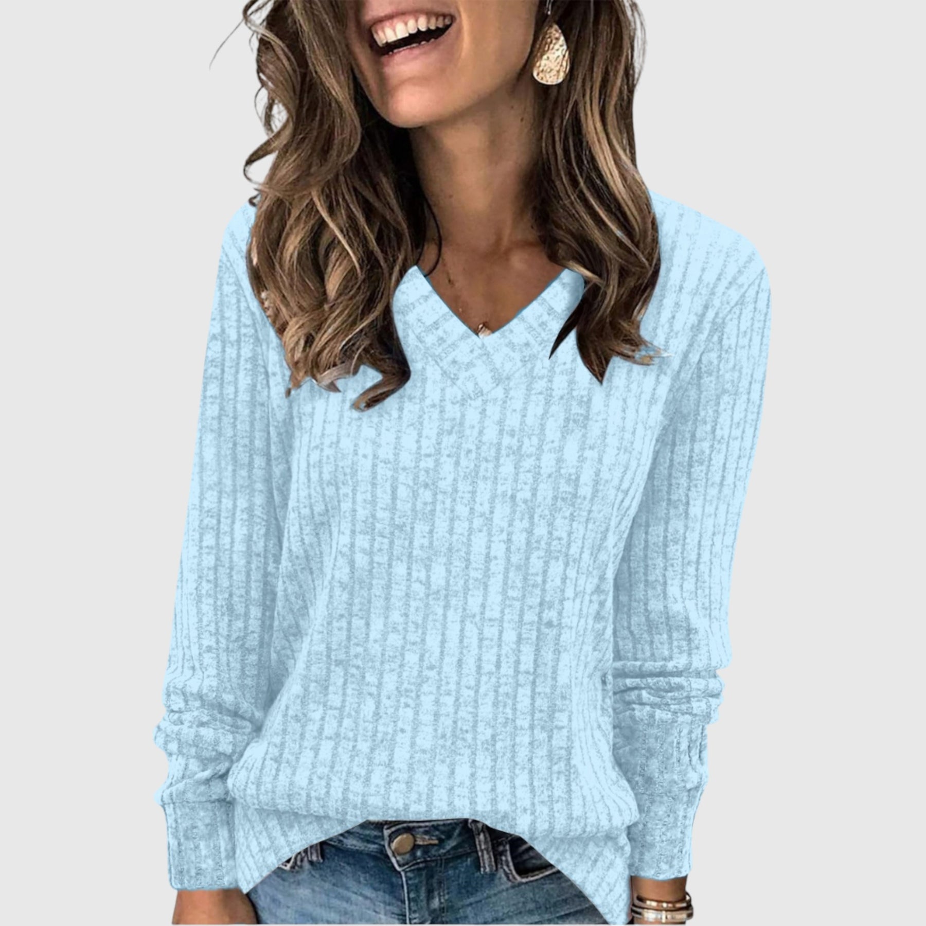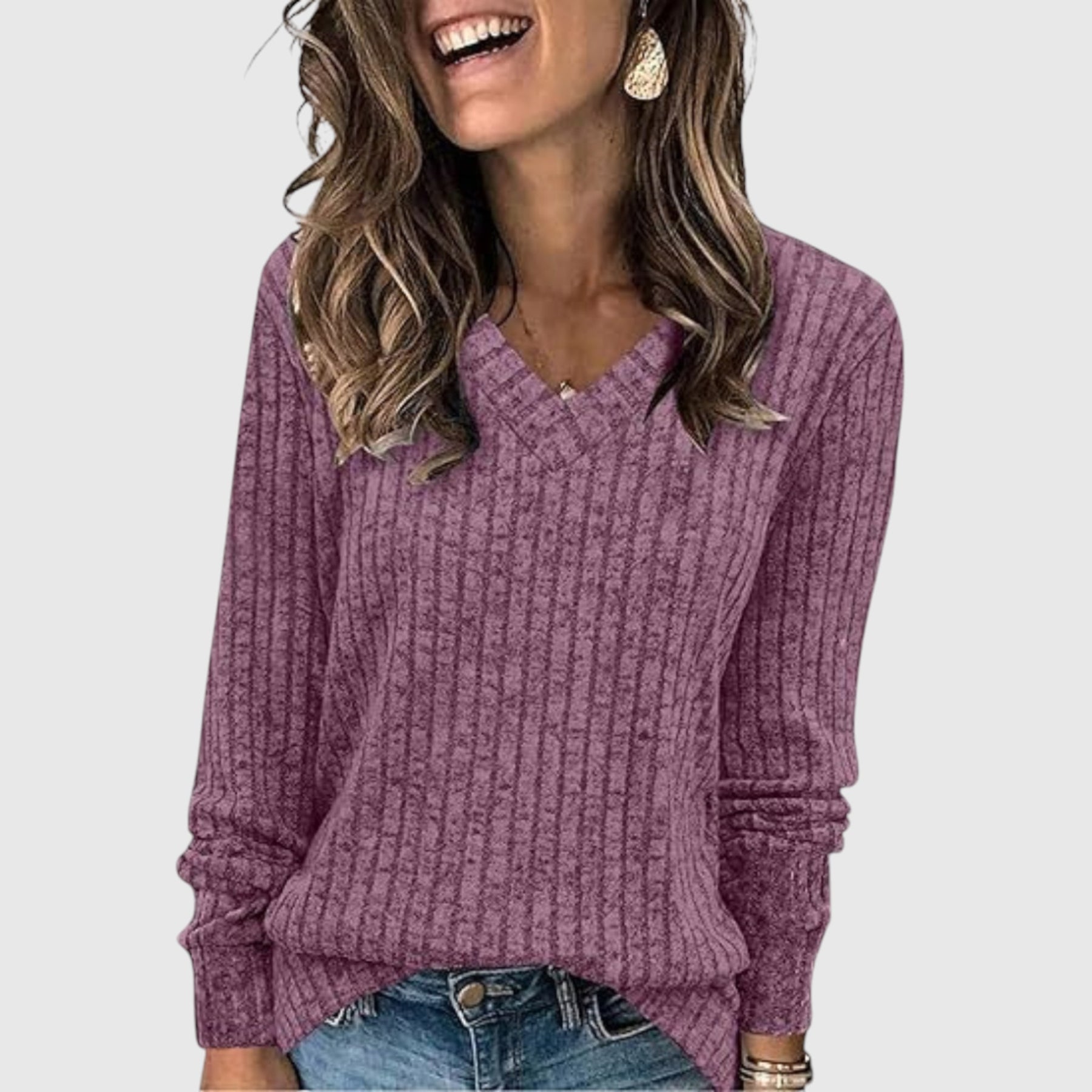 Díky lichotivému výstřihu do V a měkkému, hřejivému materiálu vám Deri přináší eleganci bez námahy a zároveň vás udrží v teple a stylu po celou sezónu.